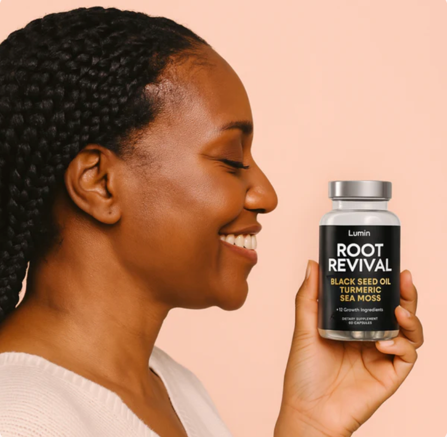 Introducing Root Revive: the first hair growth supplement for black women that targets the root cause of hair loss: scalp inflammation