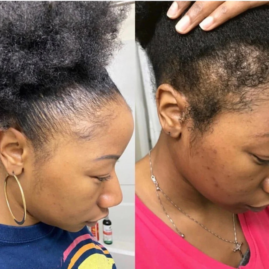 Experience the joy of a restored hairline that can handle your favorite styles again. Rock ponytails, sleek buns, and pulled-back looks without worrying about your edges - your hair is strong enough to withstand styling without breaking or thinning.