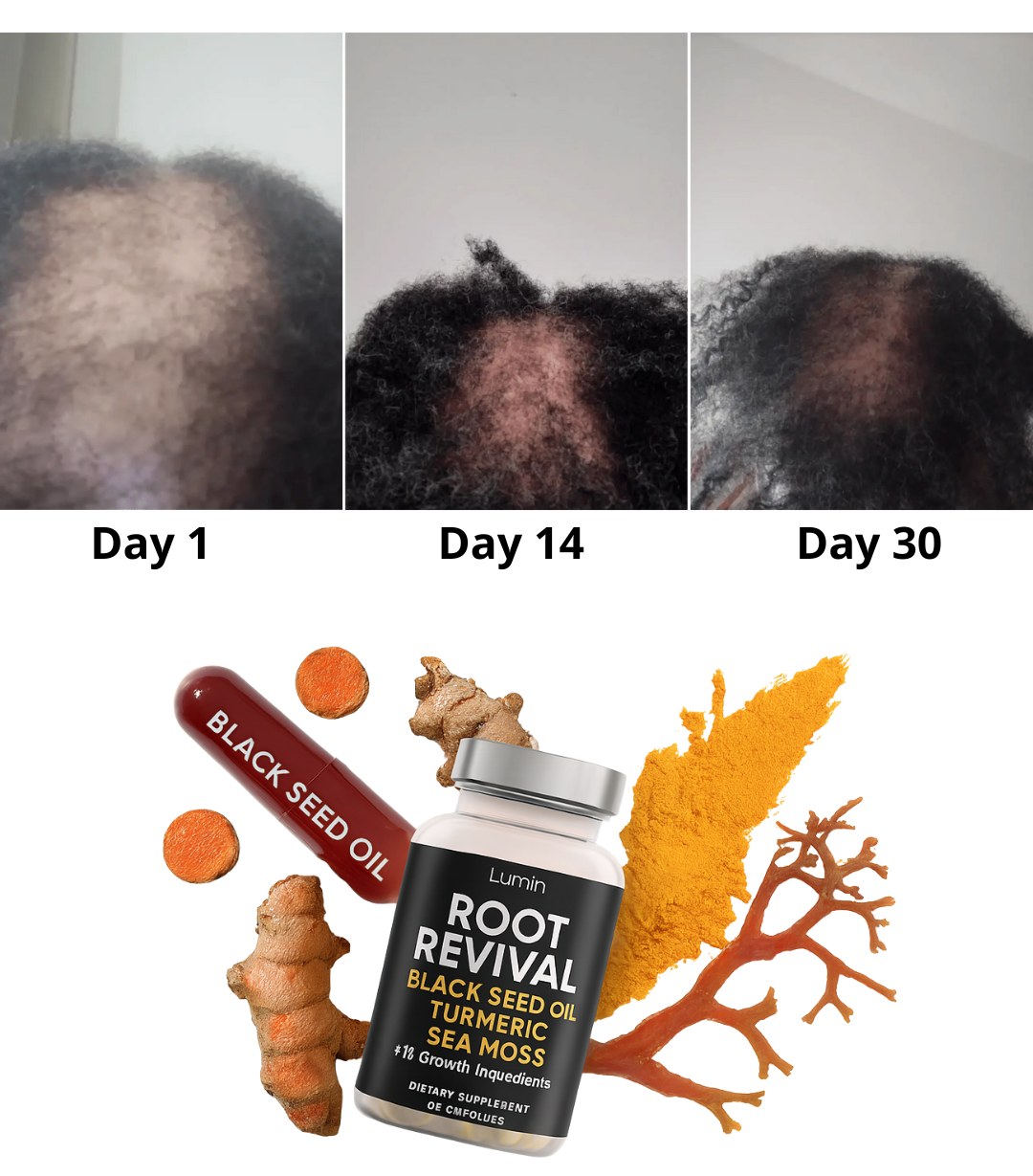 A Natural Supplement by Black Women, For Black Women, that clears inflammation from within & boosts new hair growth using ancient remedies from our ancestors.